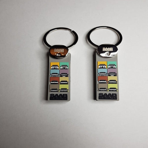 Saabicons£12.99| /2 sided 4 cols + engraving Saab Icons keychain. Soft PVC sandwich 2 sided design with engraved logo on the metal fob.