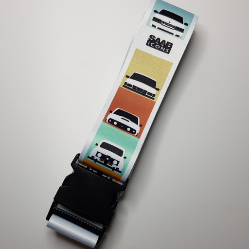 SaabiconsOriginal price £17.95Current price £13.46| /Dye sub 2 sides Saab Icons design luggage strap. Printed full colour on 2 sides with adjuster and buckle fittings.