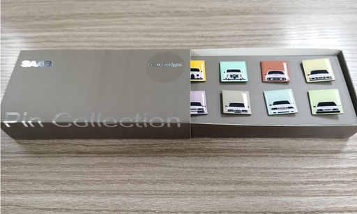 Saabicons£24.95| /Printed steel in box Saab Icons design badge sets. 8 iconic designs in high quality gift box.